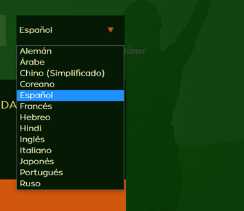 - Puede elegir el idioma deseado en el menú superior derecho como se muestra en la siguiente imagen: